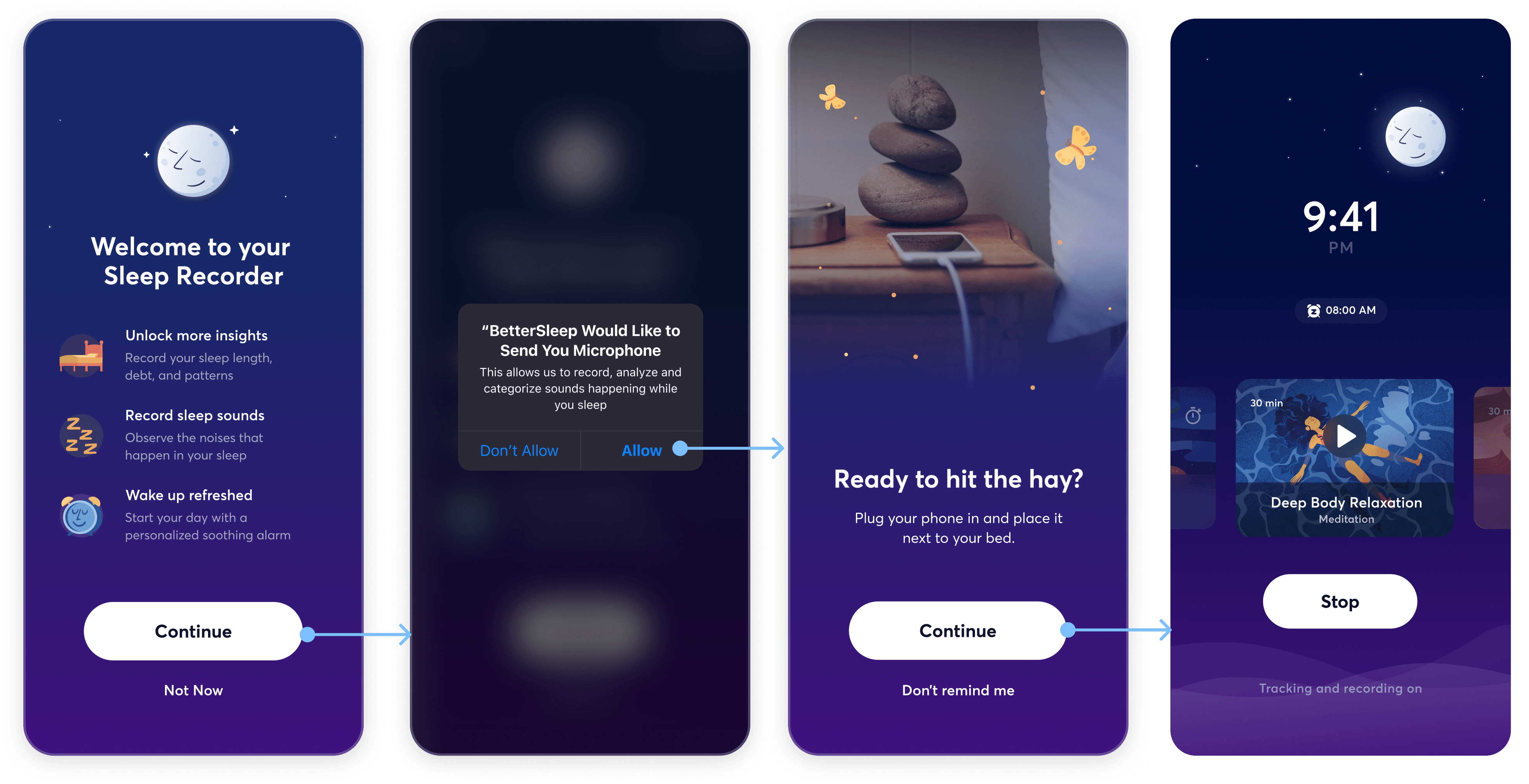 At BetterSleep, we wanted to enable users to track their sleep while listening to content. We rolled out an MVP version with just three screens to help users get started and to gather enough data to improve the entire flow. However due to the simplicity of this version, users were unable to experience the full value of the tracker.
