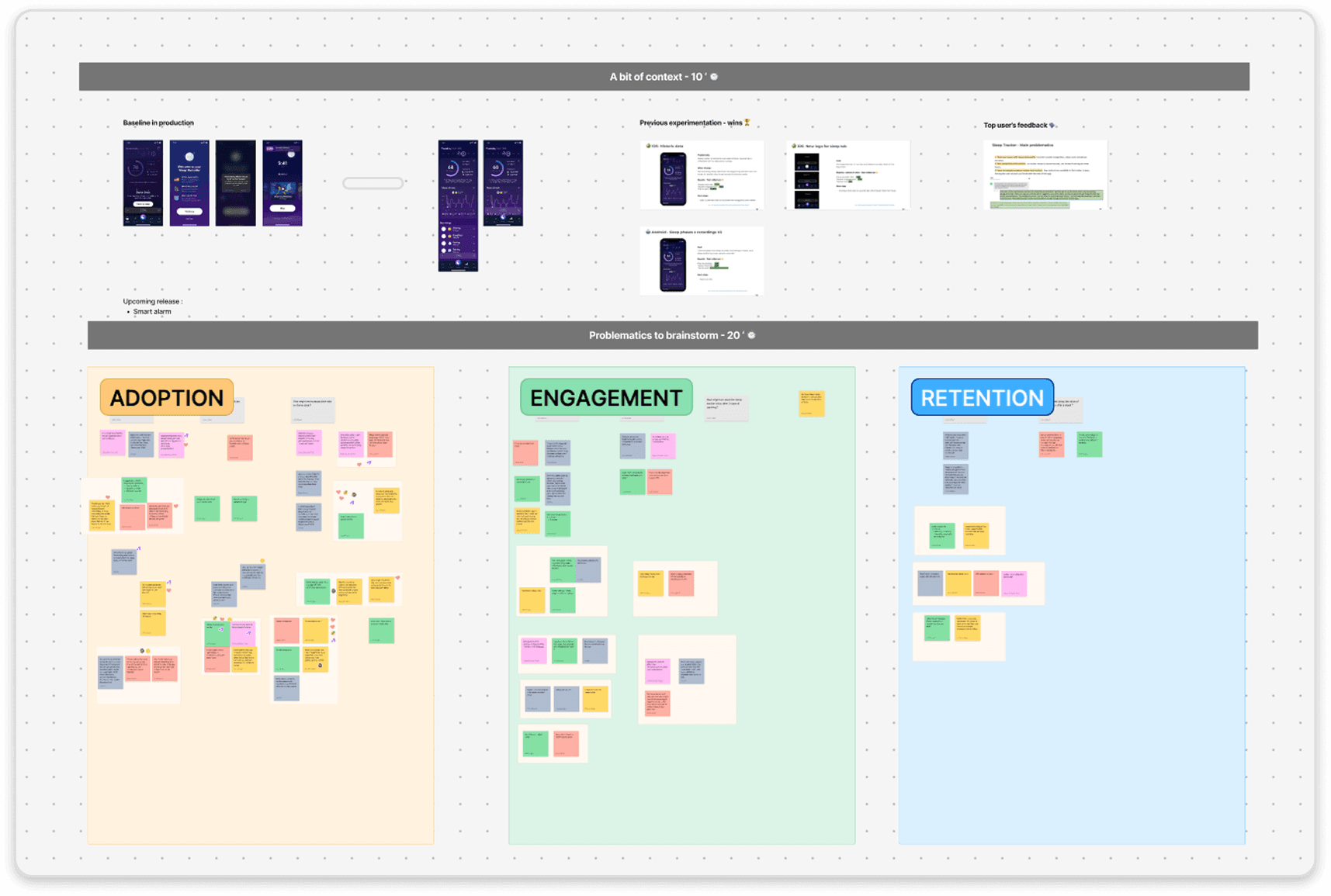 Ideate: Now that we have our data, user insights and ideas from our brainstorming sessions, we did some scoping with engineers to define the improvements that could have the greatest impact (using the RICE scoring system). Some ideas then stood out, and we were ready to create wireframes based on them.
